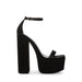 AMORI is a sleek 2 strap sandal design set on a extra-high block heel and front platform. finished off with a square toe and a rhinestone buckle on the ankle strap.